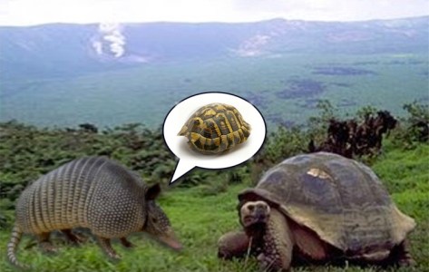 Translation: “The armadillo calling the red-footed tortoise shelled”